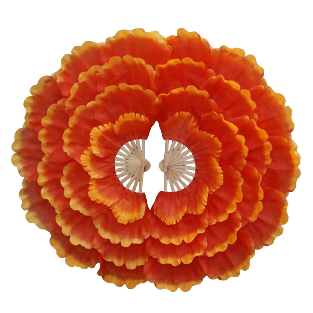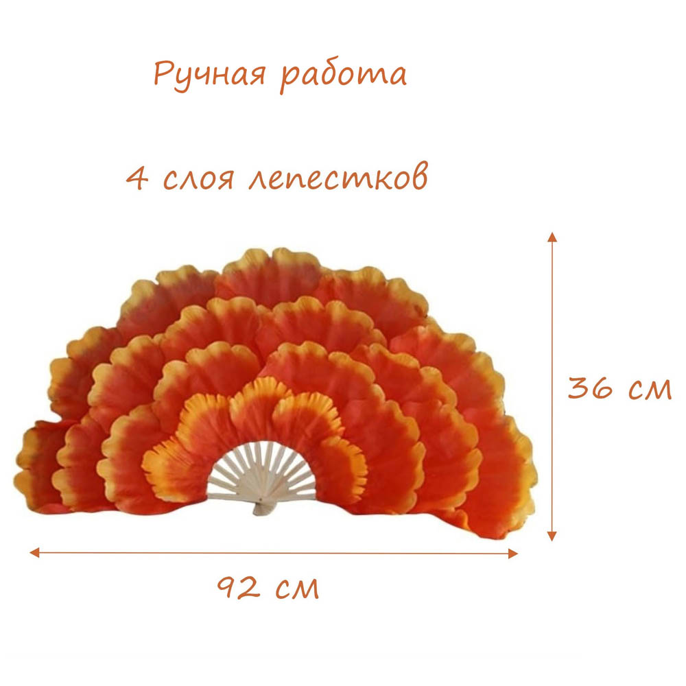 Веера пионы для танцев 92х36см 4-х слойные 2 шт., оранжевый