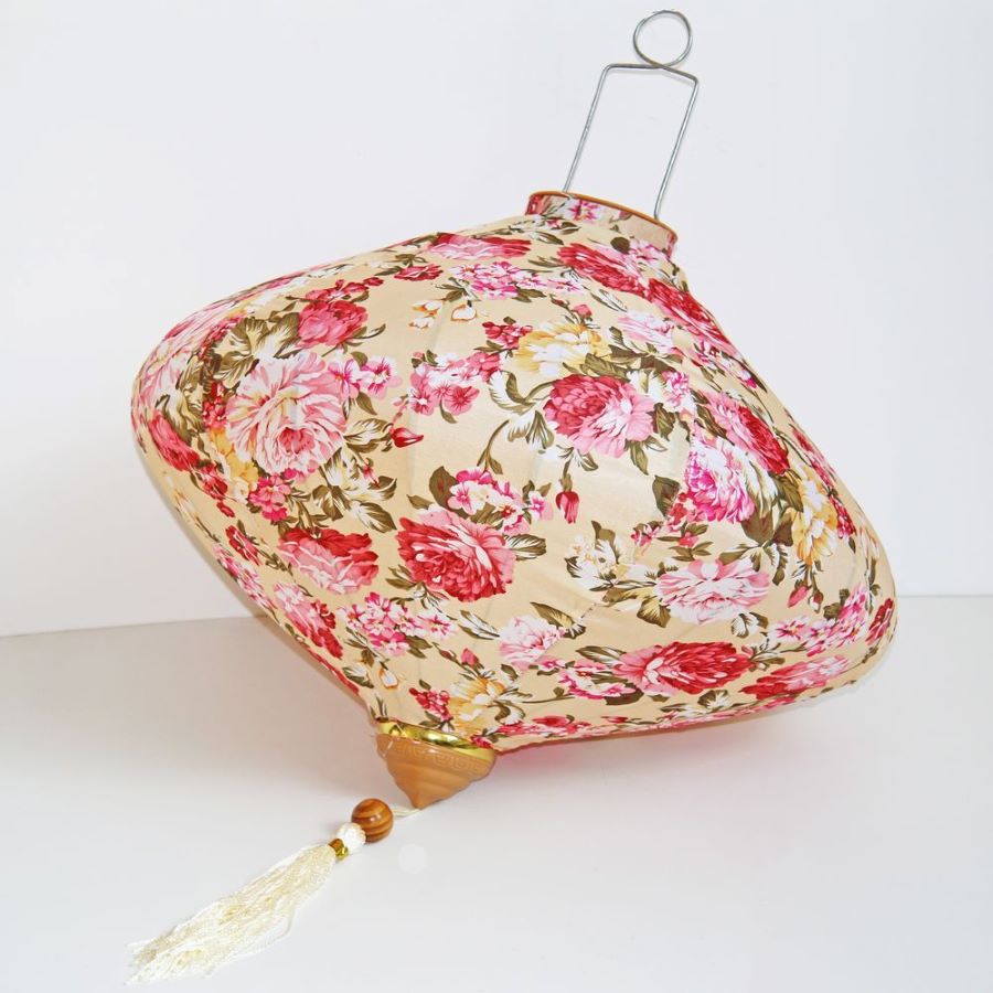 Это традиционные подвесные фонарики ручной работы, изготовленные из шелкового материала с элегантным цветочным узором, которые делают его изысканным и красивым.