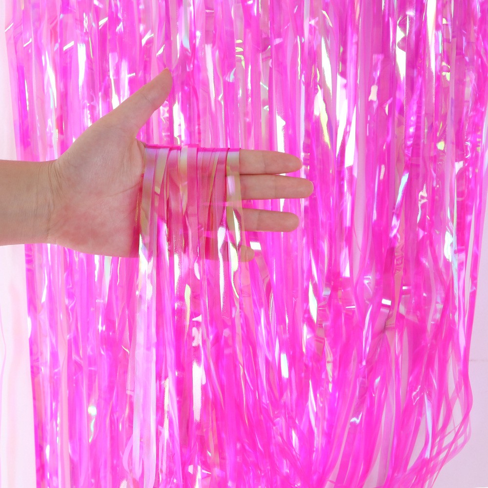 Занавес дождик 1 х 3 м,прозрачный с голографией, Малиновый