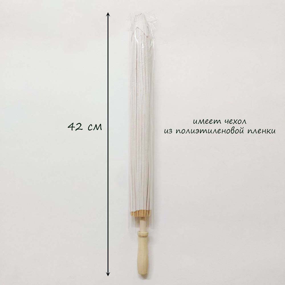 Ручка и каркас зонта для декорирования сделаны из дерева, купол – из бумаги, обработанной специальным составом. Благодаря пропитке бумага не размягчается и не рвется при нанесении краски и клея.