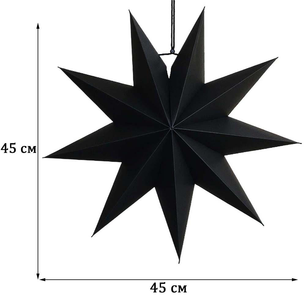 Объёмная девятиконечная звезда 45 см — декоративный элемент для интерьера и праздничного оформления. Лёгкая интерьерная звезда из картона хорошо держит форму и создаёт выразительный объём. Поставляется в сложенном виде, в комплекте шнур для фиксации объёма и подвеса.