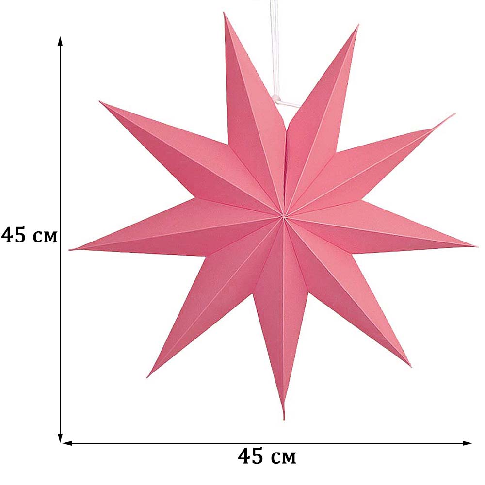 Объёмная девятиконечная звезда 45 см — декоративный элемент для интерьера и праздничного оформления. Лёгкая интерьерная звезда из картона хорошо держит форму и создаёт выразительный объём. Поставляется в сложенном виде, в комплекте шнур для фиксации объёма и подвеса.