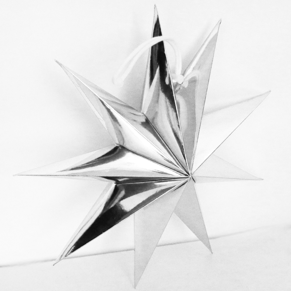 Объёмная девятиконечная звезда 45 см — декоративный элемент для интерьера и праздничного оформления. Лёгкая интерьерная звезда из картона хорошо держит форму и создаёт выразительный объём. Поставляется в сложенном виде, в комплекте шнур для фиксации объёма и подвеса.