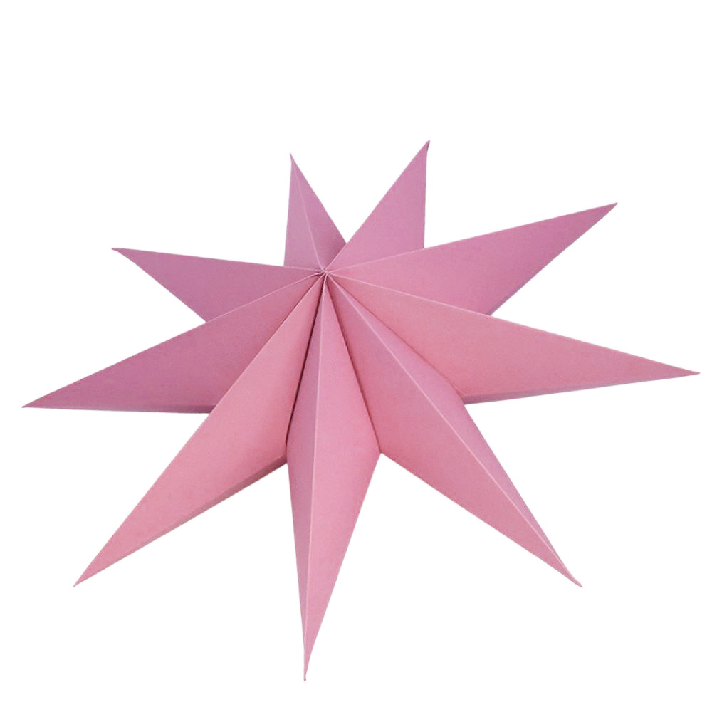 Объёмная девятиконечная звезда 60 см — декоративный элемент для интерьера и праздничного оформления. Лёгкая интерьерная звезда из картона хорошо держит форму и создаёт выразительный объём. Поставляется в сложенном виде, в комплекте шнур для фиксации объёма и подвеса.