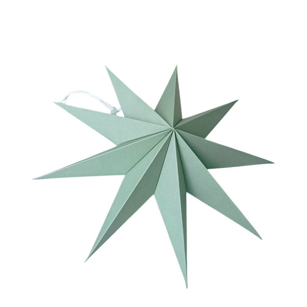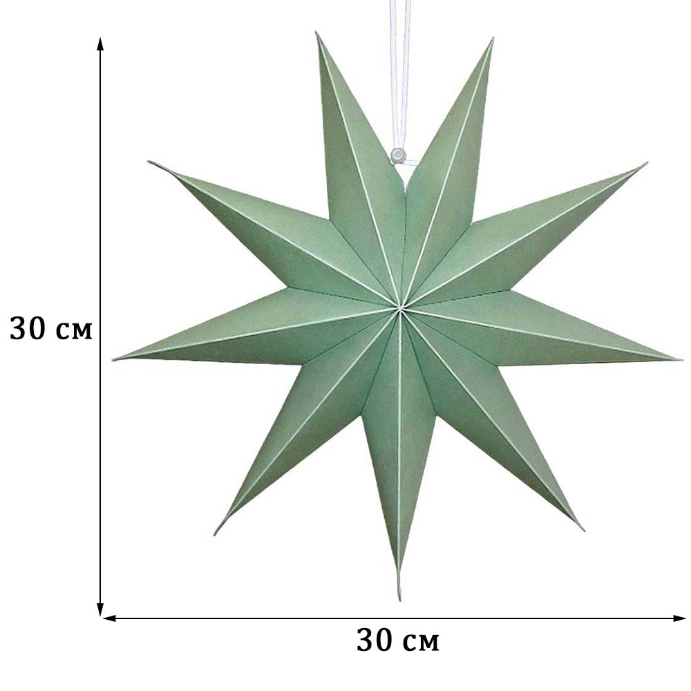 Объёмная декоративная звезда из картона диаметром 30 см с 9 лучами. Оснащена встроенным шнурком для подвешивания. Поставляется в компактном сложенном виде и быстро собирается: специальный шнурок при затягивании придаёт изделию объём и фиксирует форму. После сборки звезда остаётся устойчивой без дополнительных креплений и может использоваться многократно.