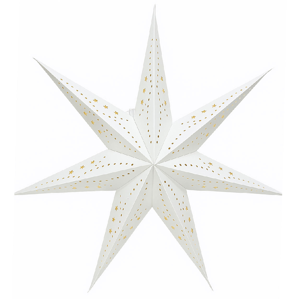 Звезда семиконечная бумажная 60 см, Звезды и кружочки, белый